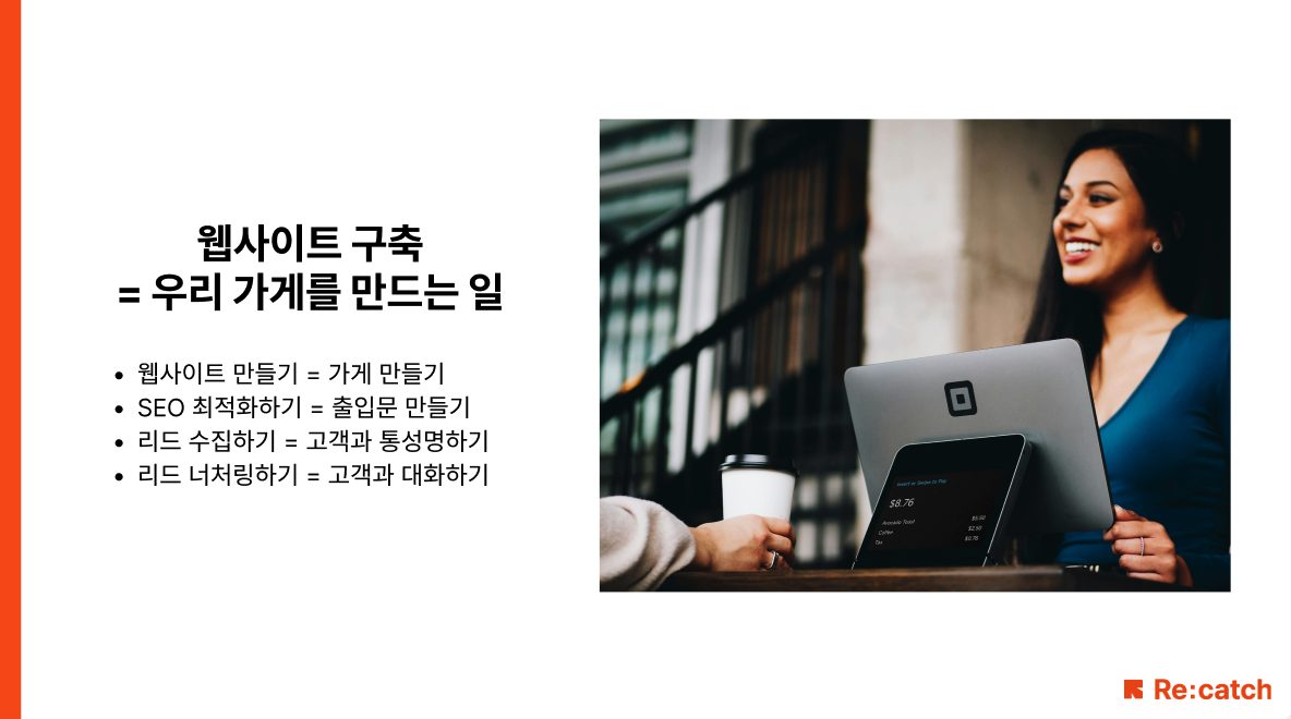 그렇다면 어떤 방식으로 웹사이트를 만들어야 할까요? 다음 편에서는 프레이머라는 도구를 통해 이 문제를 어떻게 해결할 수 있는지, 왜 프레이머로 웹사이트를 만들어야 하는지 구체적으로 다루겠습니다. 그 전에 리캐치의 실제 웹사이트 개편 스토리가 궁금하시다면 2024 베스트 블로그 콘텐츠였던 웹사이트 기획 방법 4가지ㅣ매출로 이어지는, 전환율 높은 웹사이트 만들기 를 확인해보세요. 리캐치 황하운 마케팅 리드의 생생한 웹사이트 개편 스토리를 전합니다.