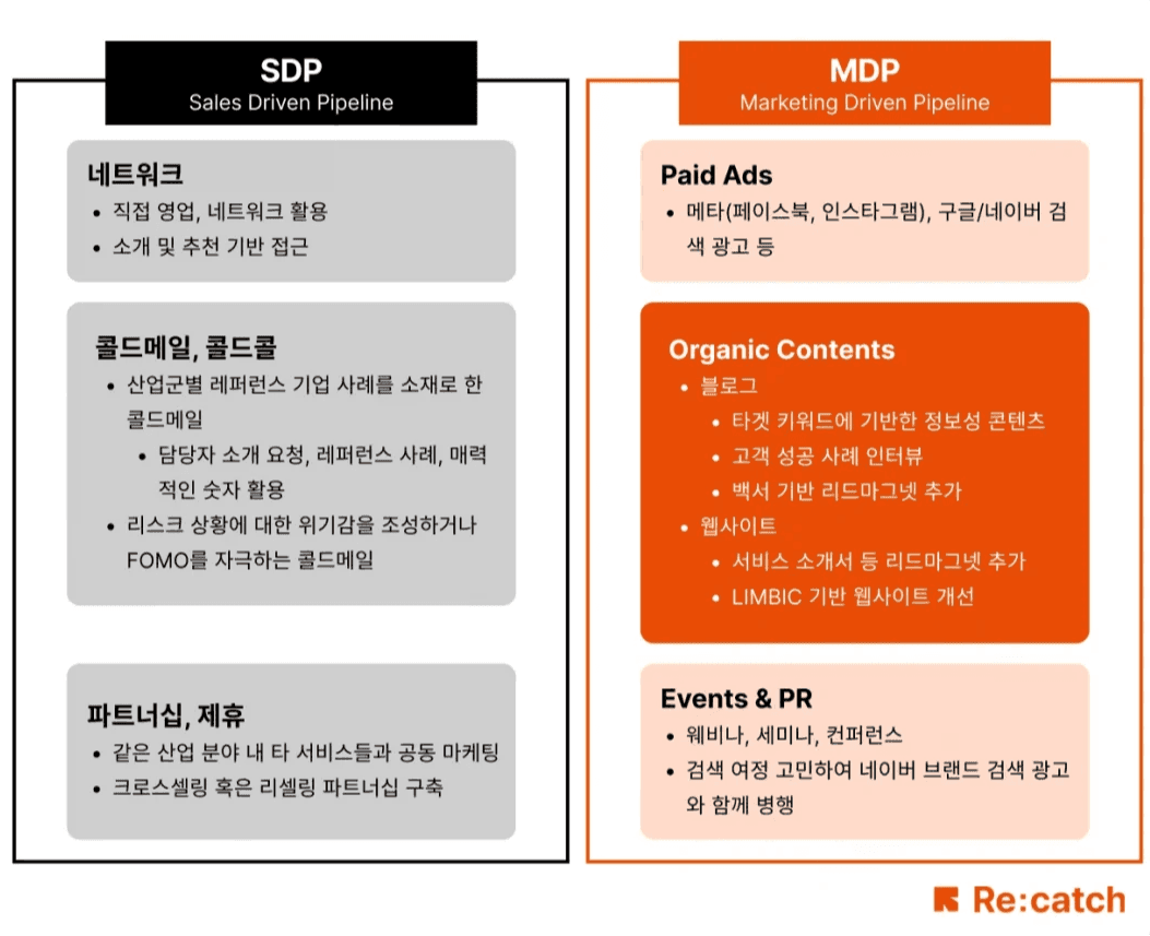 즉 MDP는 기존의 SDP 방식에 리드 확보 및 육성 단계가 추가된 것입니다.